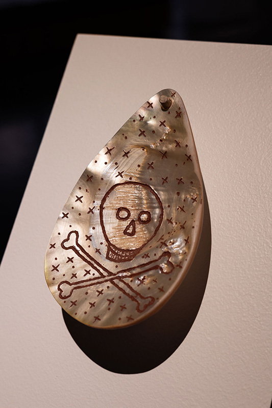 Pearl shell, red ochre.